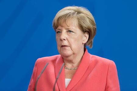 BERLIN, GERMANY - Jan 30, 2017: Chancellor of the Federal Republic of Germany Angela Merkel during a joint briefing with President of Ukraine Petro Poroshenko