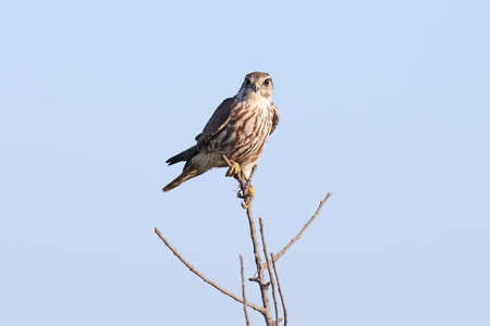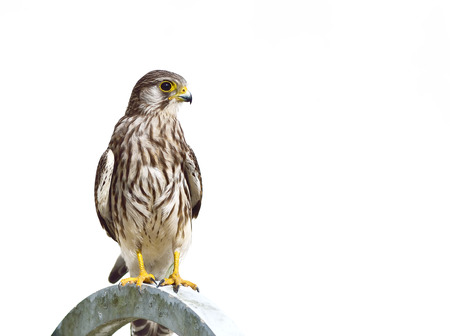 Merlin falcon female (Falco columbarius) on a branch - isolated on white background