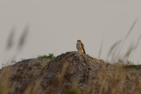 Merlin (Falco columbarius) sitting on top of a dirt pile in spring.