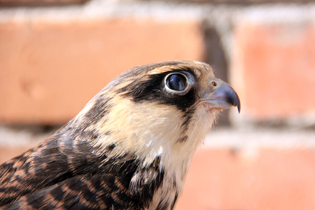 The saker falcon (Falco cherrug) up to close. The saker falcon portrait.