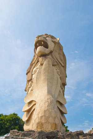 SINGAPORE - OCTOBER 16, 2014: The Merlion is a traditional creature in western heraldry that depicts a creature with a lion's head and a body