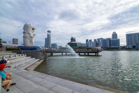 SINGAPORE - OCTOBER 31: Overview of the marina bay and the Merlion with people on October 31, 2015 in Singapore.