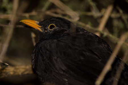 Common Blackbird, Turdus merula Portrait close portrait.