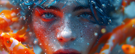 Artistic portrait of a beautiful woman surrounded by colorful corals.