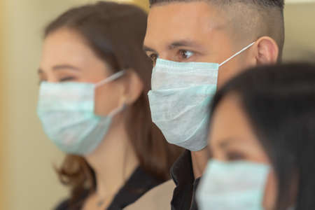 Close up portrait business people face with wearing mask medical, Hygienic mask prevent for covid-19.