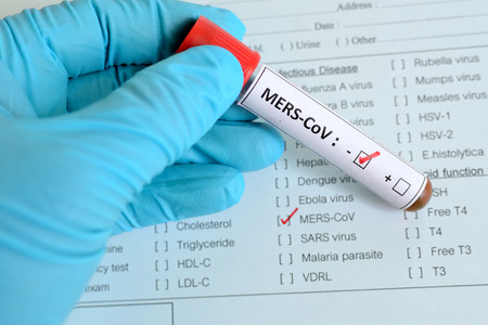 MERS-CoV Novel Corona virus concept. Middle East Respiratory Syndrome abstract collage.