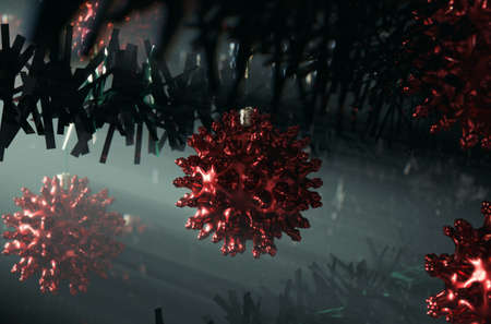 3d illustration of a contagious coronavirus covid 19 with red spikes floating in a dark cellular environment