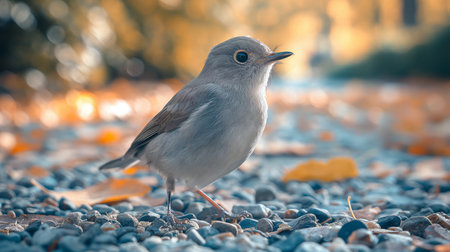 small bird standing on a branch with leaves, in the style of photorealistic accuracy, cabincore.