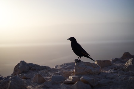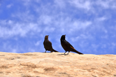 Birdwatching in Dana Biosphere Reserve in Jordan: Tristram's starling (Onychognathus tristramii, Tristramstar) in the rocky desert