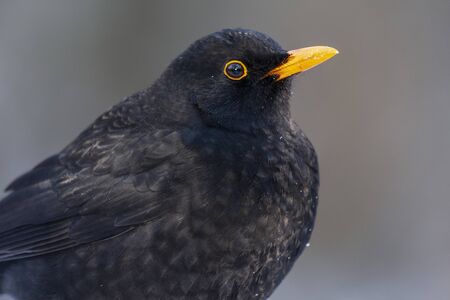 portrait of male blackbird in winter in stockholm