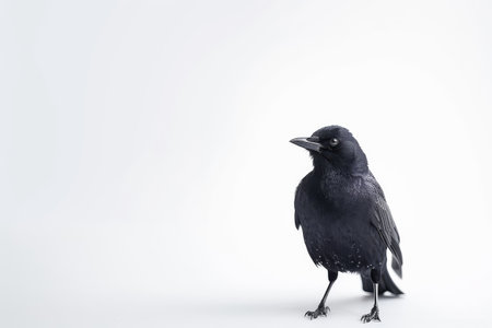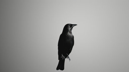 Black crow (Corvus corax) on a grey background