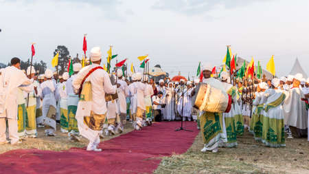 ETHIOPIA,LALIBELA-CIRCA JANUARY 2018--unidentified people in crowd of the genna celebration