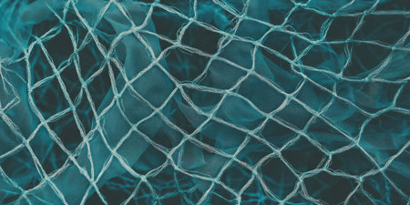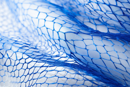 A close-up view of blue netting with delicate white details, revealing an intricate pattern and texture, Ai Generated.