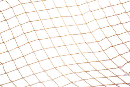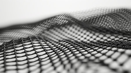 Black and white photo of net on white background, closeup. a black mesh pattern is visible against the light backdrop. the concept conveys protection or security in sports such as soccer, basketball, hockey or tennis. it can also symbolize fence building for construction projects. isolated on a past