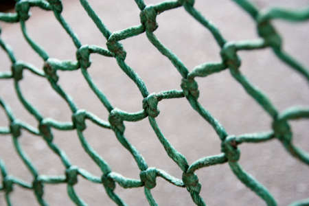 detail of a red and dirty sand net on a sandy ground with shadow cast on the ground