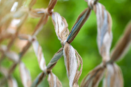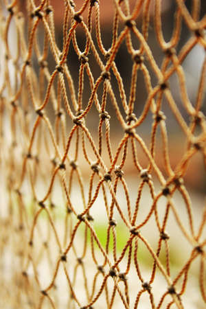 Mesh rope on bright brown background in playground. Rope Mesh.
