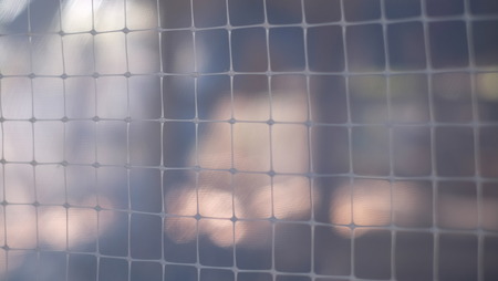 Transparent safety net. Child and pet protection net. For balcony and windows. Made of nylon threads. Front view. Rhombus pattern texture.