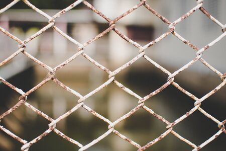Close up Solid Metallic Wire Mesh Chain link Fence in Vintage Style Steel. Selective focus wire mesh fence