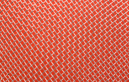 Metal background. Lattice texture with small cells grid. Selective focus point