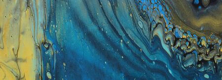 art photography of abstract marbleized effect background. turquoise, blue and gold creative colors. Beautiful paint. banner