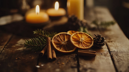 Dried orange slices and cinnamon sticks create a warm, inviting atmosphere.