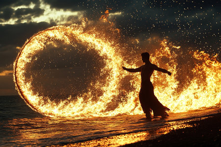 Fire dance performance truly showcases extraordinary skill, creativity, and artistry in the dark. Generative AI