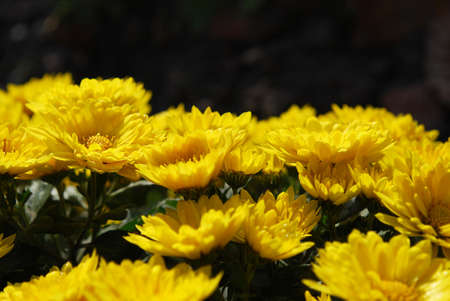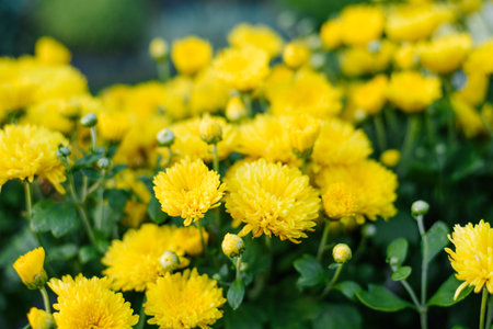 beautiful bushes of yellow chrysanthemum flowers close-up