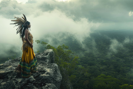 Native american woman in traditional costume at the Mesoamerican festival