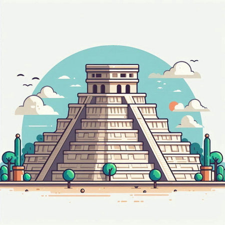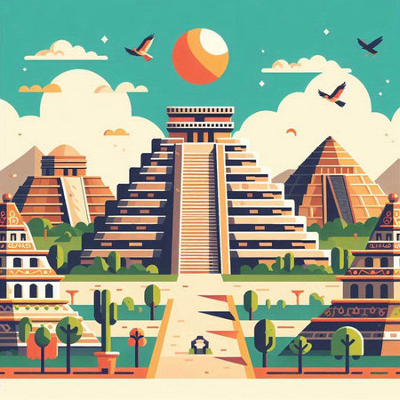 Ancient Mayan pyramid of Kukulkan in mexico. Vector illustration