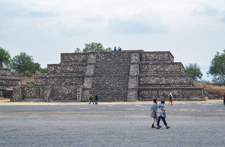 MEXICO CITY, MEXICO - JANUARY 30 2019 - Tourist at Teotihuacan pyramid ancient ruins one of the country most famous and visited archeological sites