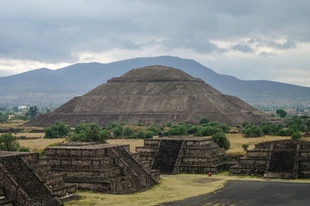 The ruins of Teotihuacan with in the background the temple of the sun, Mexico