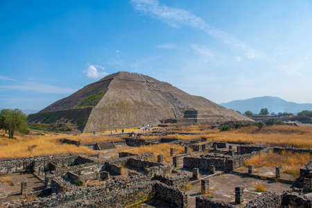 Beautiful architecture of Teotihuacan pyramids in Mexico. Landscape with beautiful blue sky.