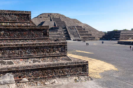 Pyramid of the Sun and Plaza of the Pyramid in Teotihuacan in city of San Juan Teotihuacan, State of Mexico, Mexico.