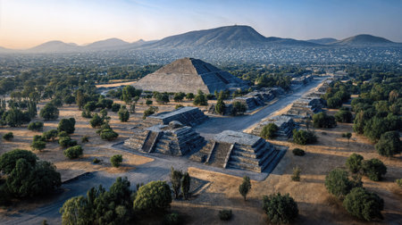 Teotihuacan in Mexico, showcasing iconic ancient pyramids and cultural heritage. Tourism, adventure, and historic exploration concept