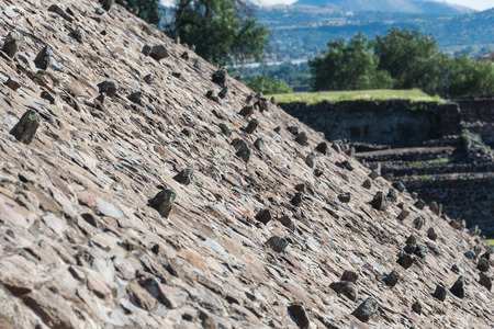 Rocks sticking out on the slope of the Pyramid of the Sun in San Joan Teotihuacan, near Mexico City in Mexico.