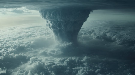 Awe-inspiring view of a funnel-shaped cloud formation creating a striking tornado-like effect in the atmosphere, capturing the raw energy and beauty of nature's forces.