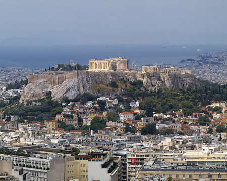 Aerial view cityscape of athens from top of philopappos hill, a famous acropolis viewpoint.