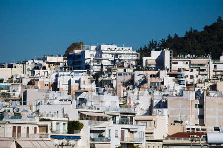 Downtown of Athens. Acropolis of Greece. View over the city from above. white city.