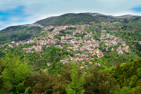 view of mountain village, Valtessiniko in Arcadia, Peloponnese, Greece.