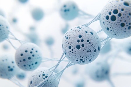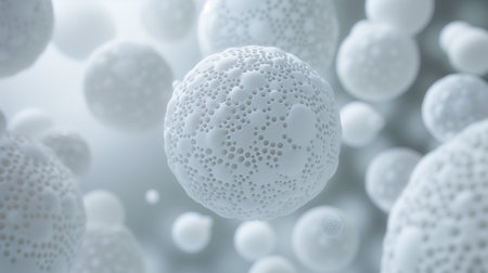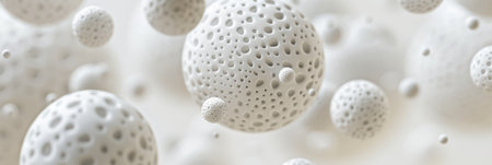 Abstract white porous spheres floating in space, representing futuristic nanotechnology advancements.