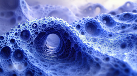 Organic abstract blue surface with many holes and bumps creating a tunnel effect. Ai generated