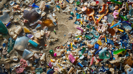 Colorful microplastics pollution close-up highlighting environmental impact
