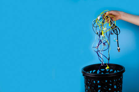 Lots of smartphone headphones is thrown into the trash for disposal and recycling
