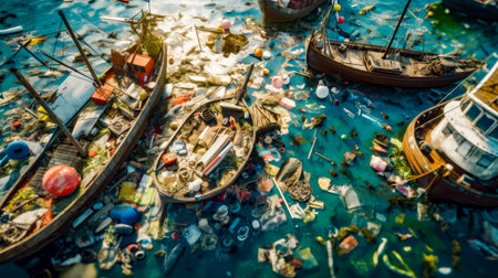 An AI generated illustration of a beach littered with debris and garbage