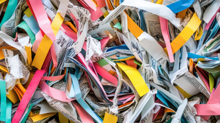A vibrant and textured background featuring an array of colorful shredded paper. Ideal for creative projects, design elements, or decorative uses.