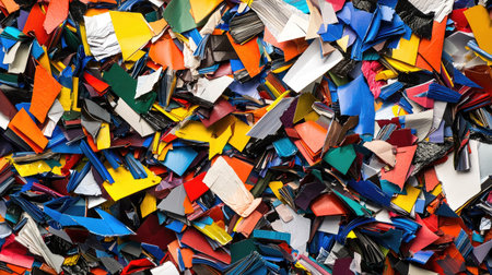 A vibrant collection of colorful plastic fragments showcases the beauty of recycled materials. Perfect for illustrating concepts of sustainability and recycling processes.