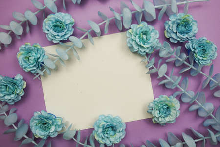 Creative layout made of leaves with paper card note. Flat lay. Nature concept.