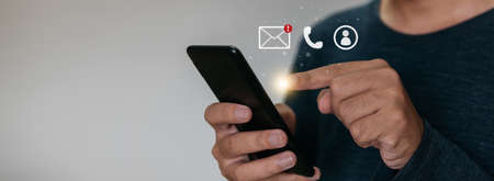 Woman hand using smartphone to send and recieve email. Business communication technology concept.
