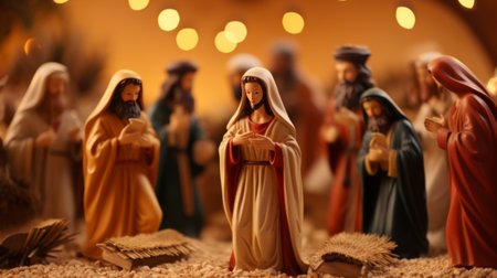 An image featuring a nativity scene with representations of Jesus, Mary, and the baby Jesus, A classic nativity scene with Mary, Joseph and baby Jesus, AI Generated