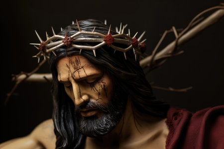 Intimate portrayal of a profound representation: A black Jesus Christ adorned with the crown of thorns. Concept Cultural Symbols, Religious Art, Controversial Portrayals, Iconic Imagery